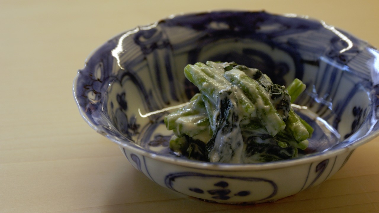 日本料理 基本の仕事 ほうれん草の白和え